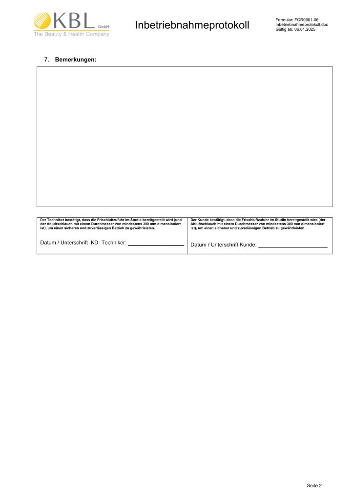 Inbetriebnahmeprotokoll / Installation Report