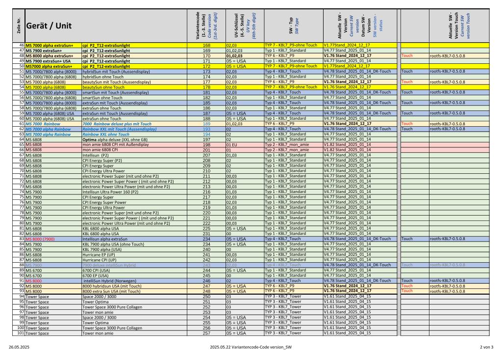Verwendung Variantencode SW_EU